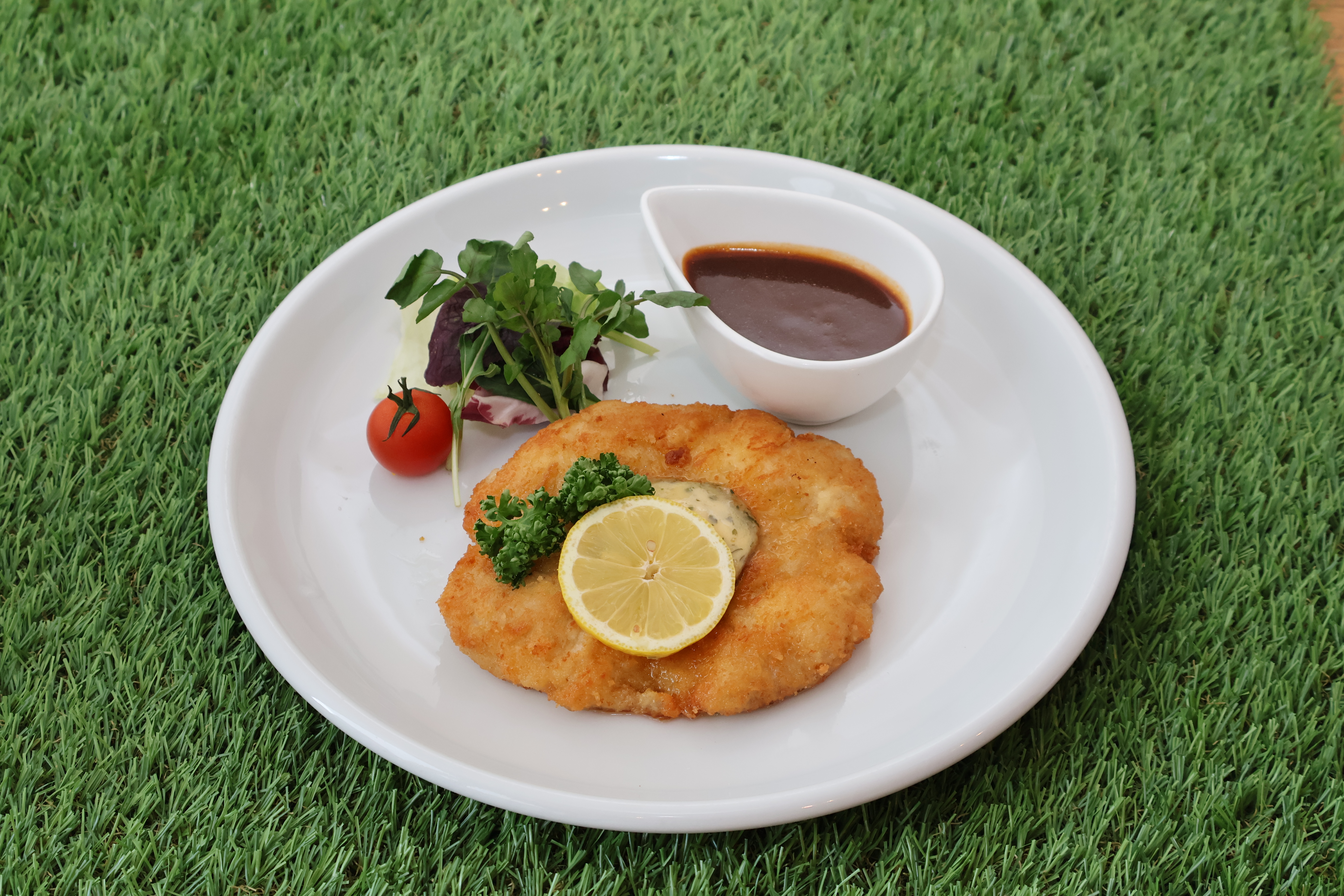 薄く伸ばした鶏肉を丁寧に揚げ焼きにし、外は香ばしく、中はしっとりと仕上げた上品なカツレツ。レモンの爽やかな酸味とガーリックバターが旨みを引き立てる、軽やかな一皿。【にんにくを使用しております】